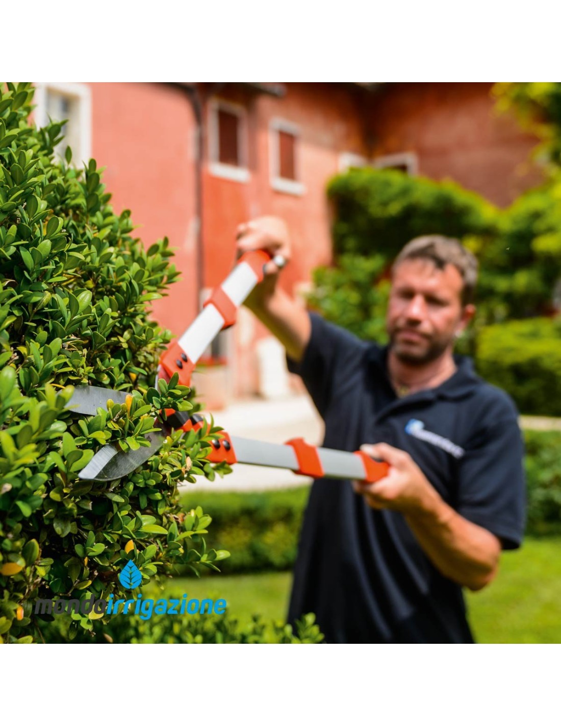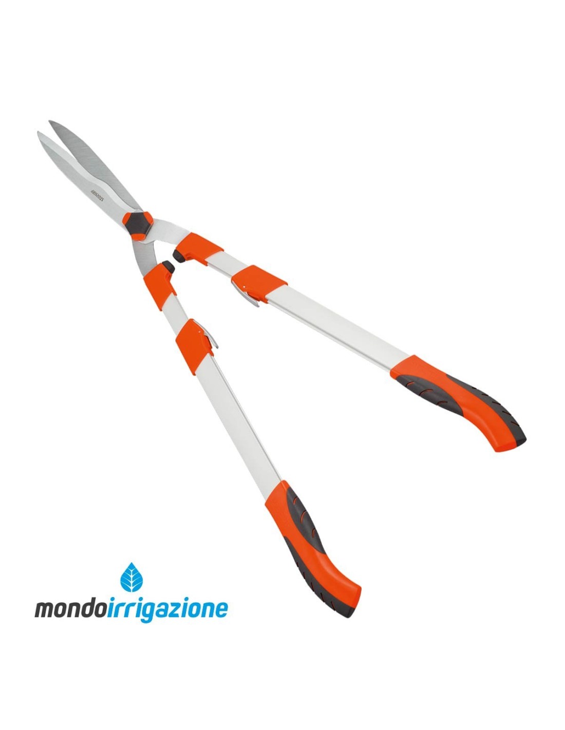 Il manico telescopico è in alluminio, solido e leggero, ed è regolabile da 73 a 87cm, per adattarsi ai differenti utilizzi e altezze della siepe.