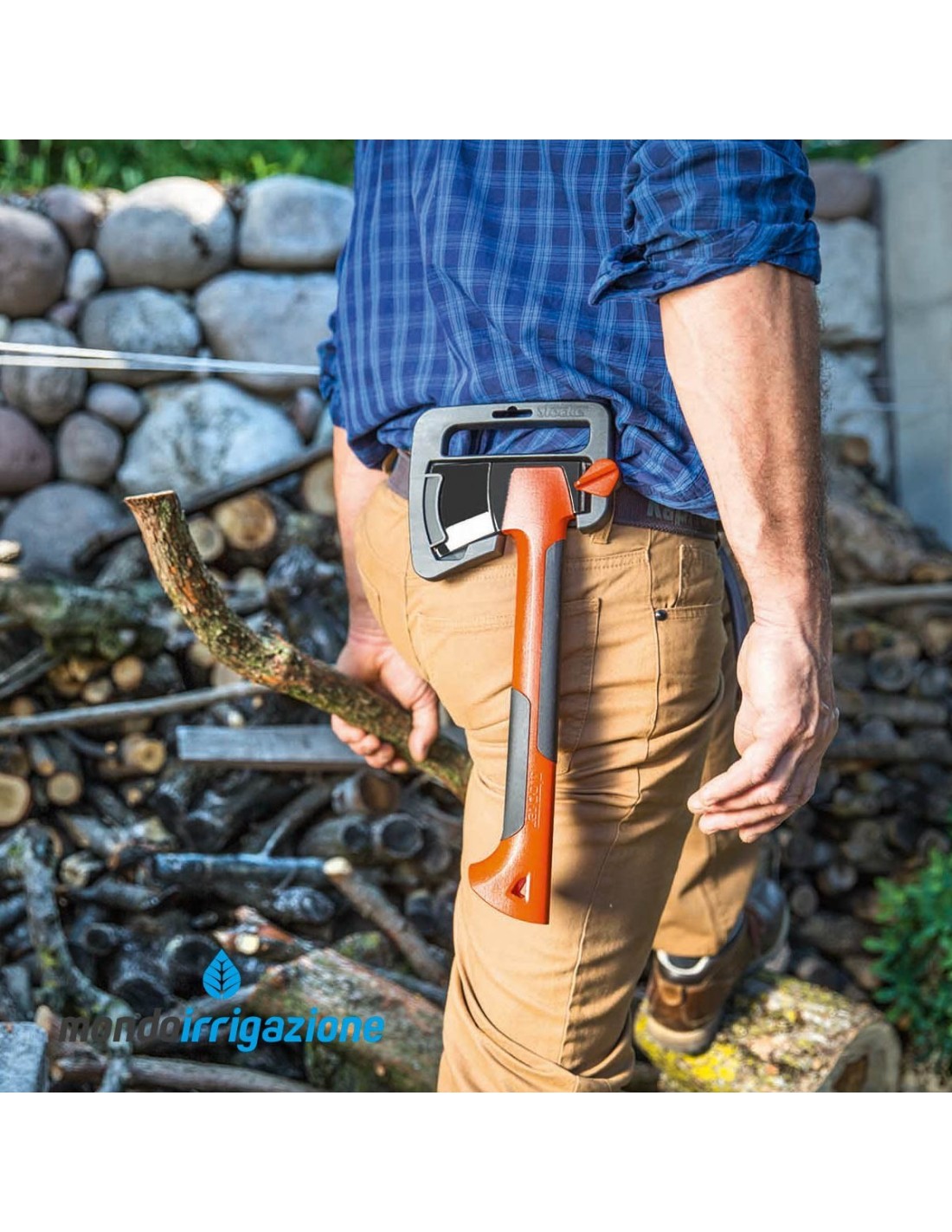 L'ascia da taglio Stocker viene fornita completa di custodia passante per cintura, perfetta per trasportare l'attrezzo in sicurezza.