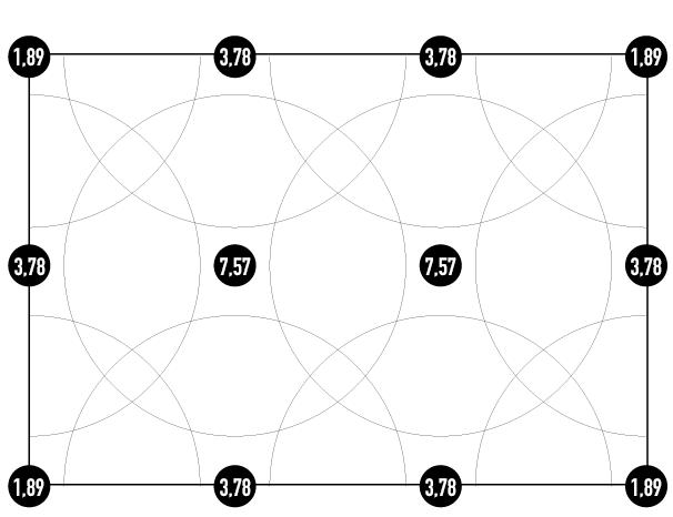 Prendiamo ad esempio l’impianto nell’immagine sottostante, dove abbiamo collocato i nostri irrigatori Hunter Ps Ultra con raggio 3 mt e annotato nel cerchio le rispettive portate.