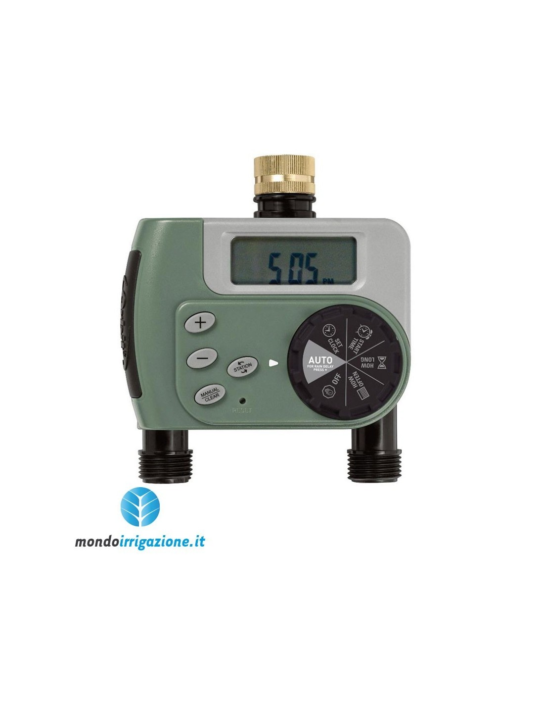 - Durata dell'irrigazione regolabile, con tempi da 2, 5, 10, 15, 30, 60, 90, 120 minuti