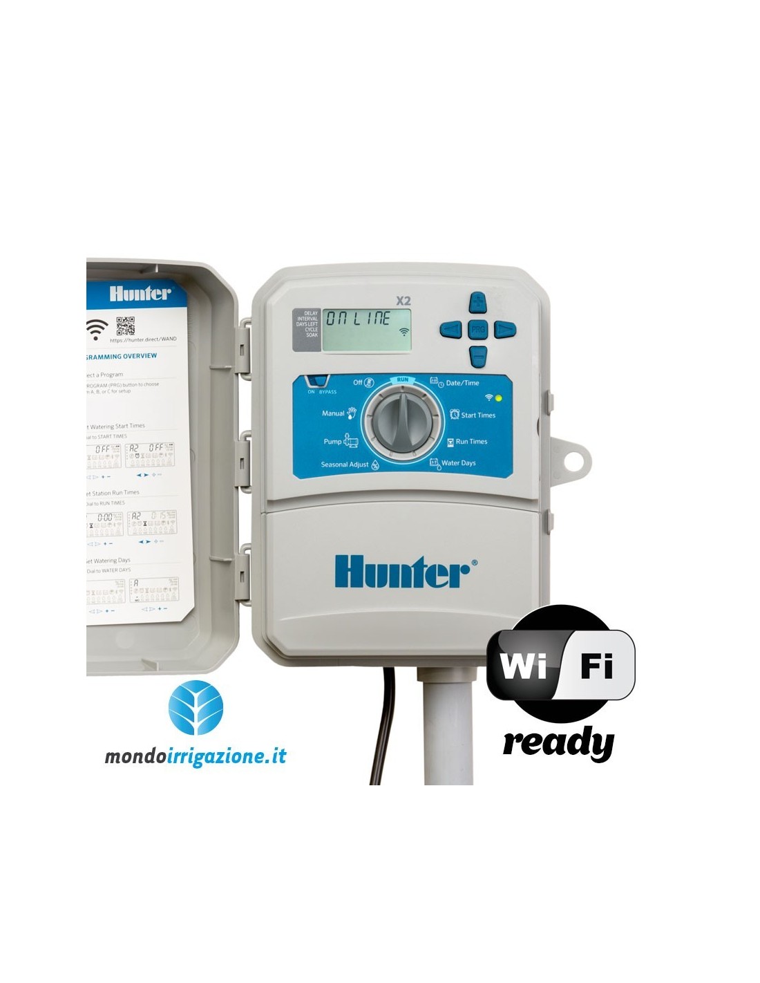 La centralina Hunter X2 è un programmatore per irrigazione evoluto da esterno a 6 stazioni. E' WiFi ready, attraverso il modulo opzionale WAND si trasforma in un programmatore smart, che può essere gestito da APP e da Web. Modello X2-601-E.
