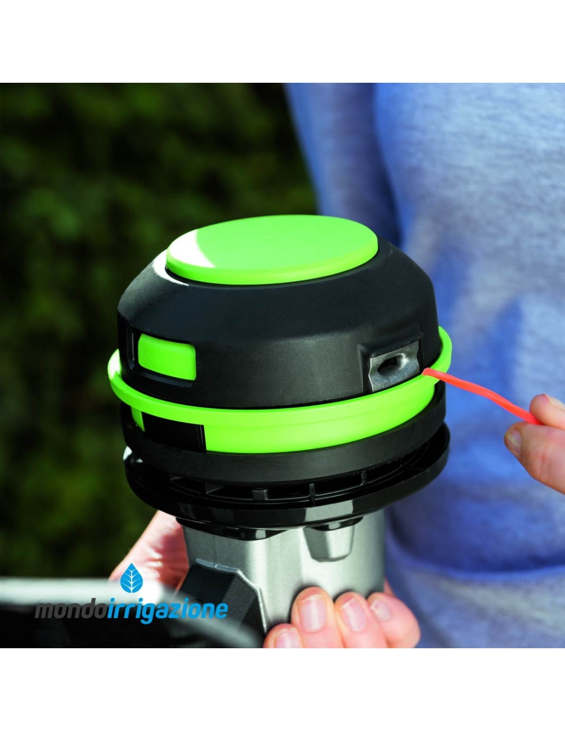 Ego ST1510E è il primo decespugliatore al mondo con tecnologia Powerload. La testina autoavvolgente consente di caricare il filo con facilità e velocemente: è sufficiente inserire il filo nella fessura apposita della testina, controllare che la lunghezza sui due lati sia la stessa, e premere il pulsante di riavvolgimento. Il filo si avvolgerà in un attimo e con precisione all'interno della testina Powerload.