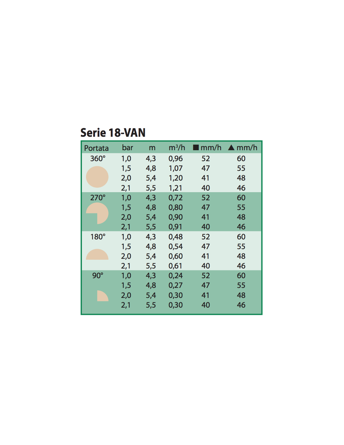 Le testine per irrigatori Rain Bird VAN sono semplici da installare, facili da regolare, le operazioni di pulizia sono comode e agevoli. L'irrigazione è omogenea, l'utilizzo è adatto per irrigazione di aree verdi, prati e giardini, cespugli irregolari.