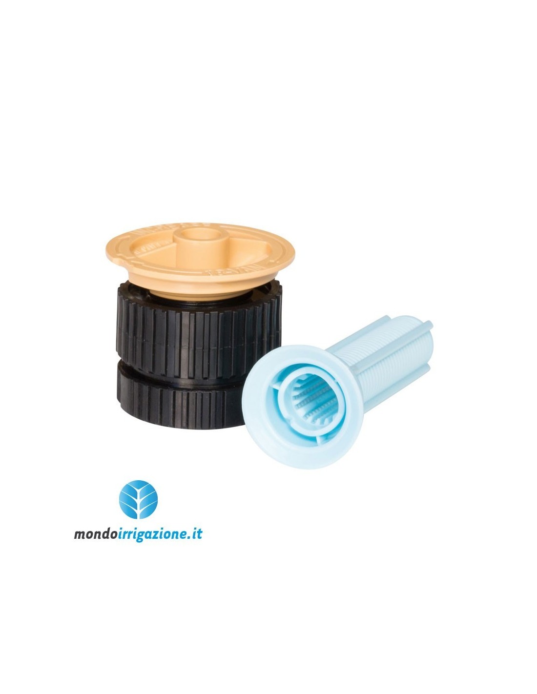 Testina per irrigatori statici Rain Bird 18 VAN, regolazione dell'arco da 0 a 360° e vite rompigetto per la riduzione della gittata.