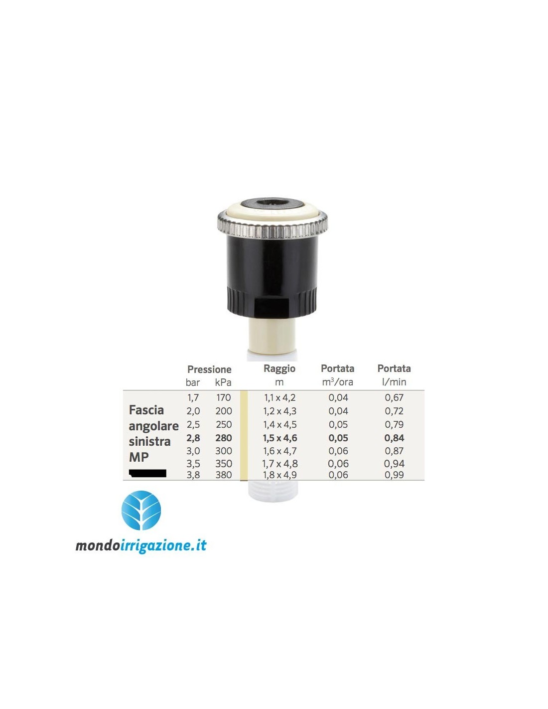 Le testine Hunter MP Rotator Strip e Corner sono molto parche nei consumi, con un risparmio idrico del 30% rispetto alle testine Hunter tradizionali. Si consiglia una pressione di esercizio di 2,8 bar.